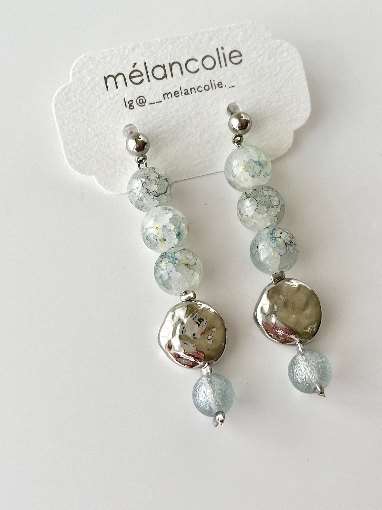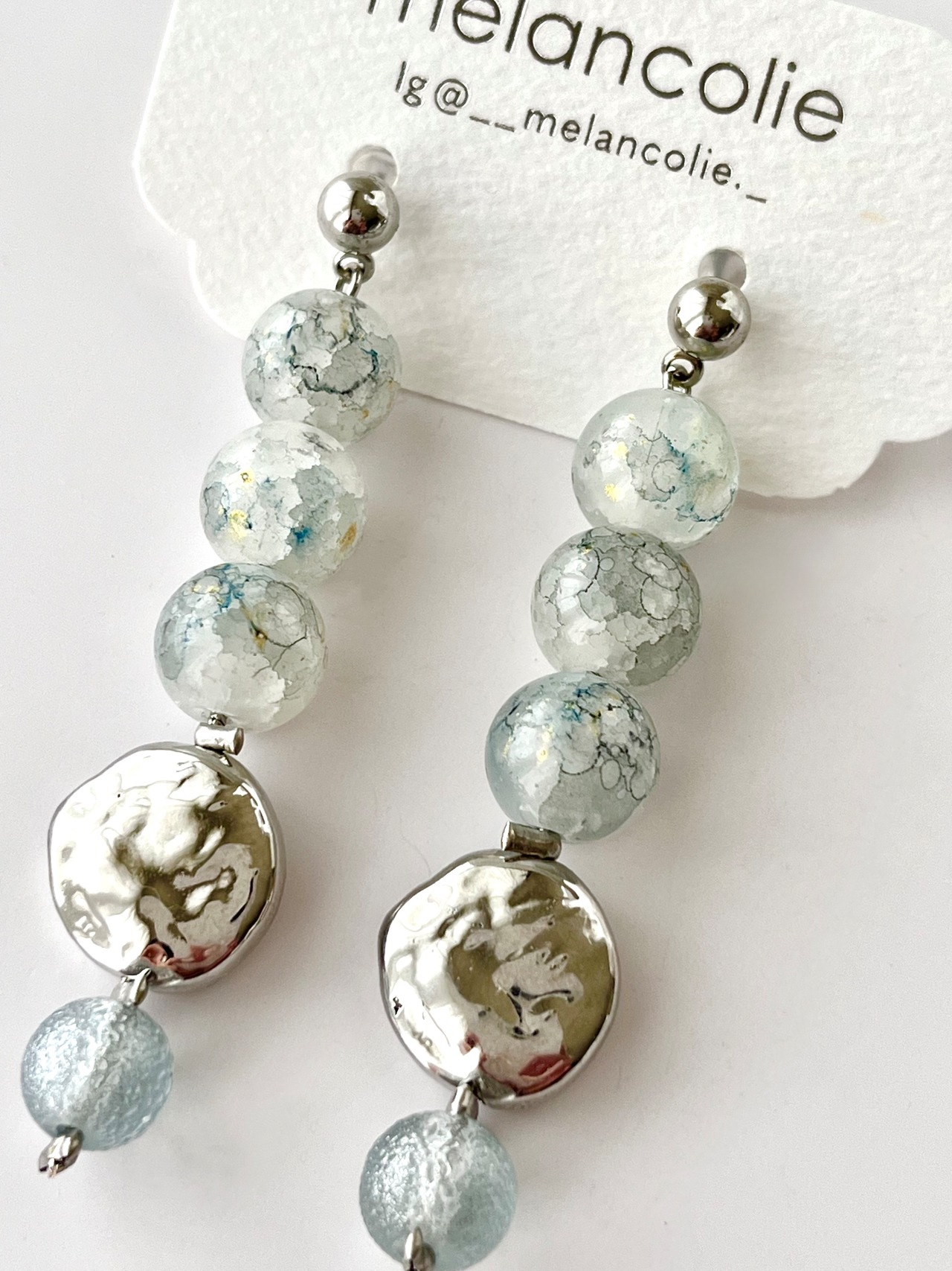 こちらはクラックといってひびが入ったビーズを並べて涼しげな雰囲気のピアスです。