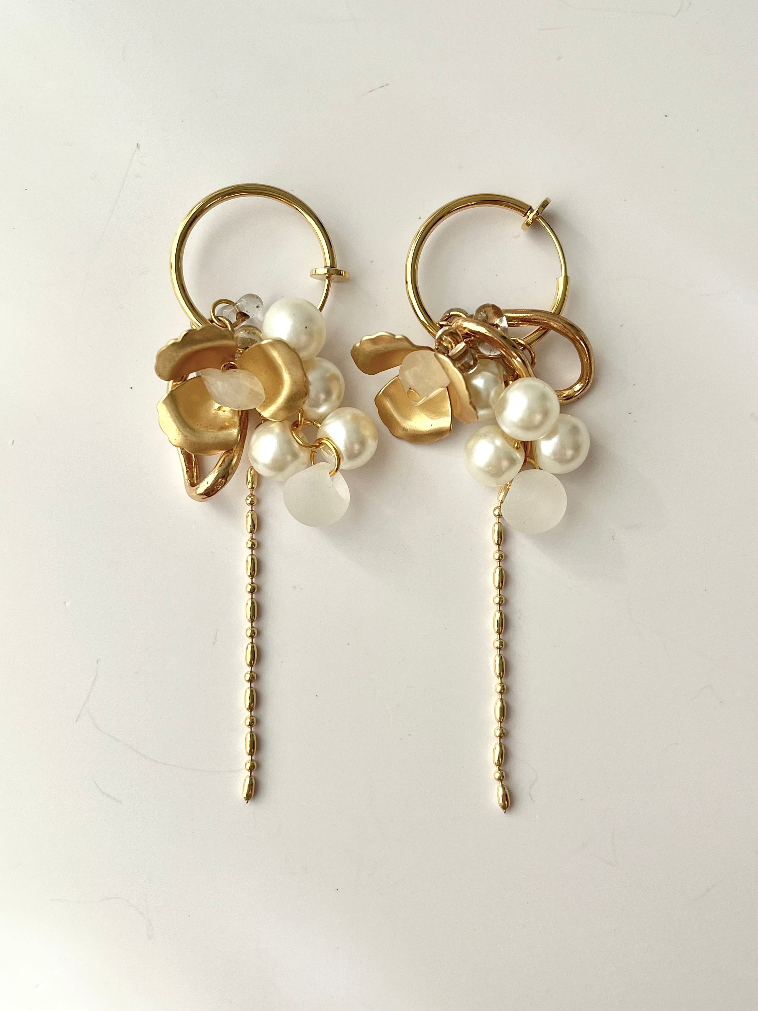 4wayフラワーパールじゃらイヤリング・ピアス