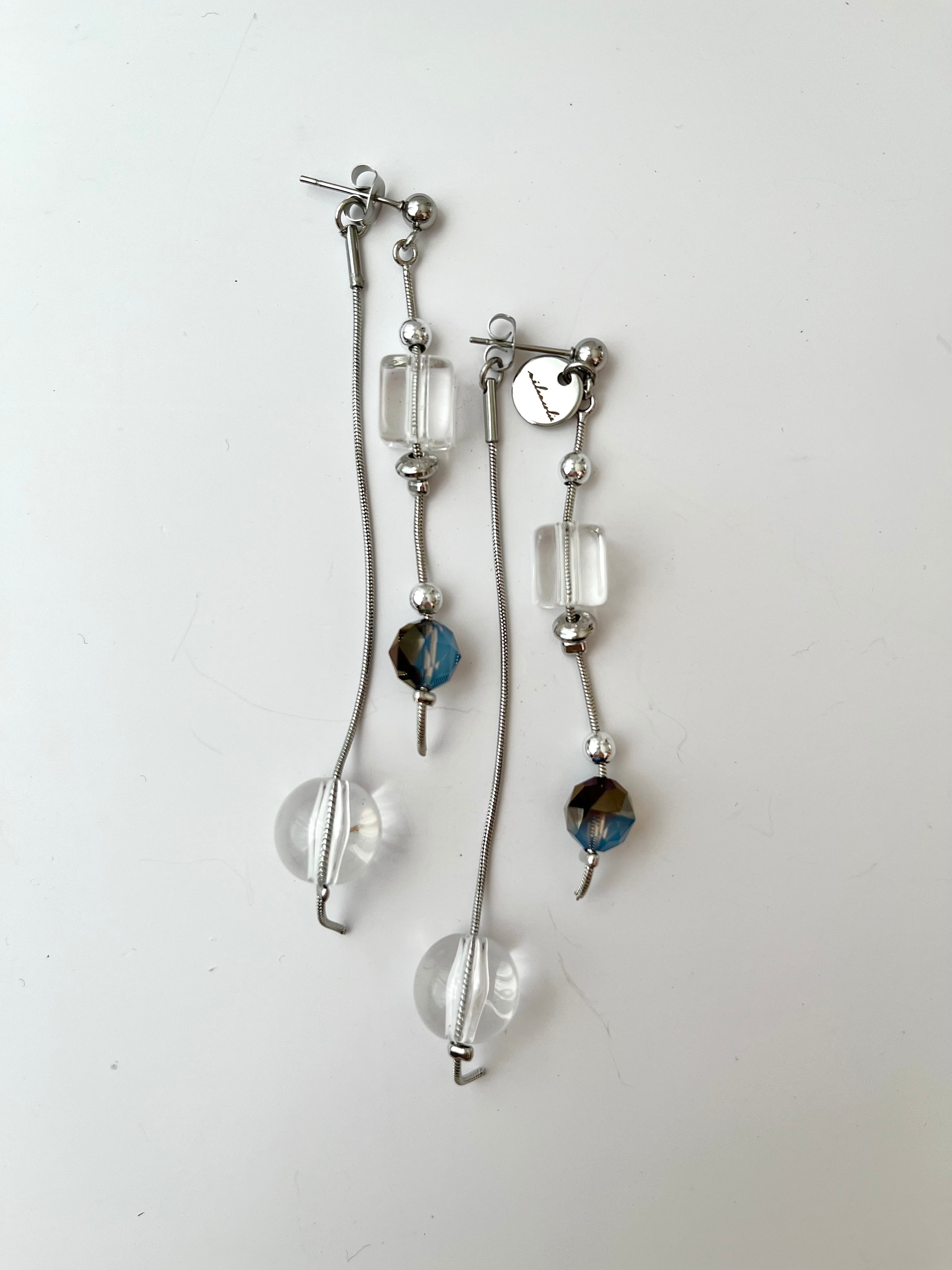 しゃらっと落ち感のあるチェーンにビーズが揺れる軽やかな耳飾りです。