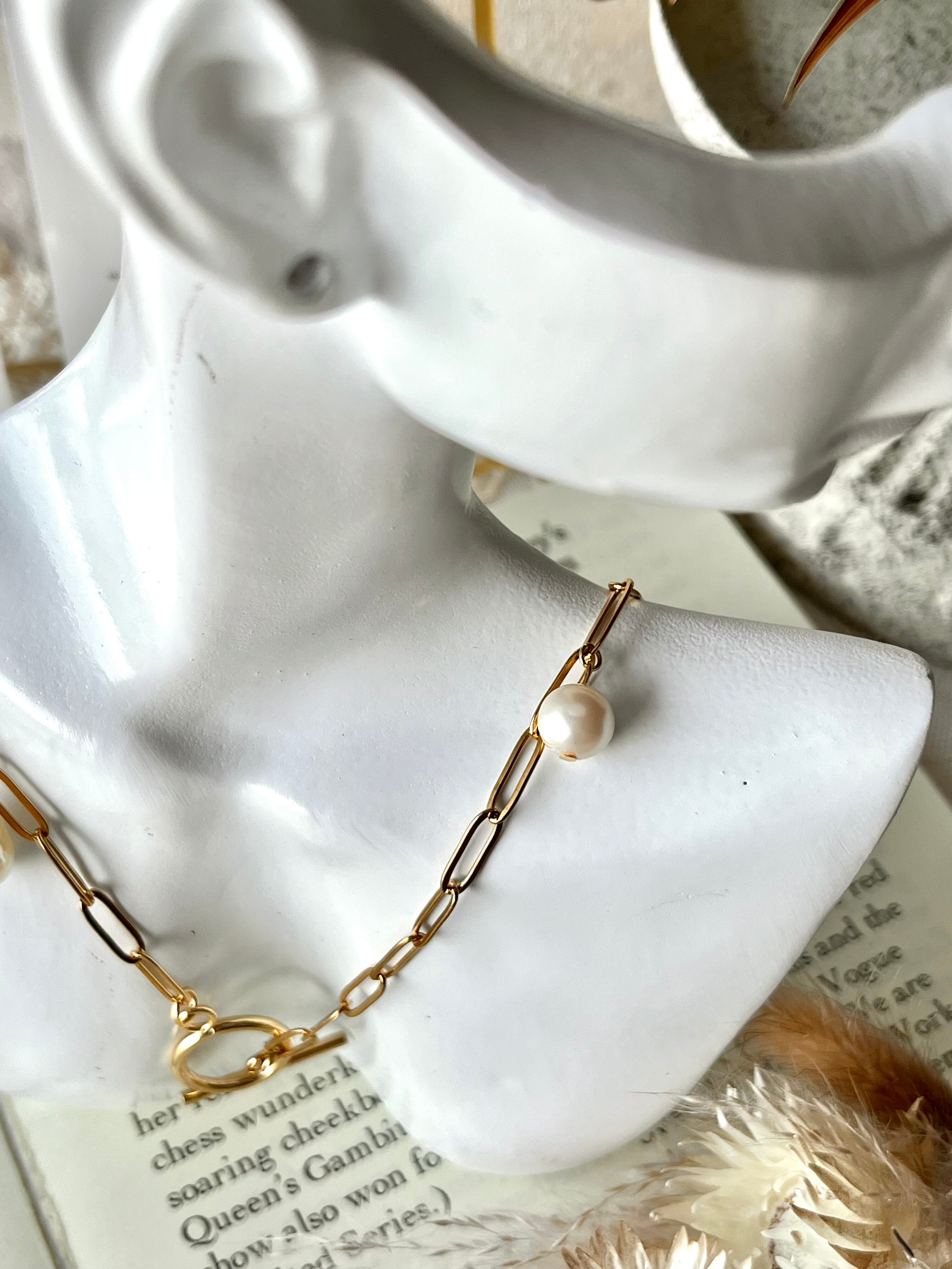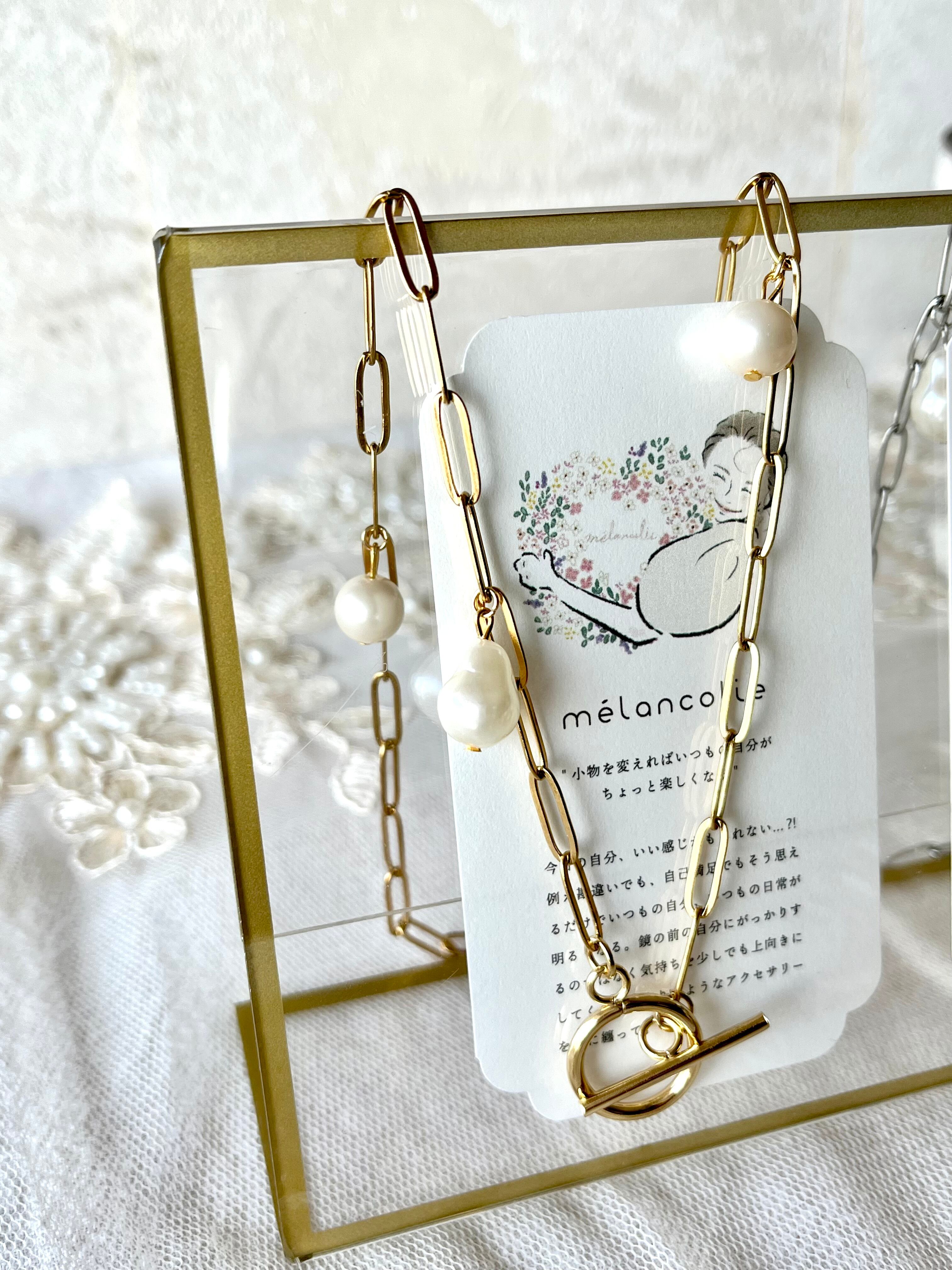 素材:チェーン/ステンレス、パール/アクリルパールと国産パール