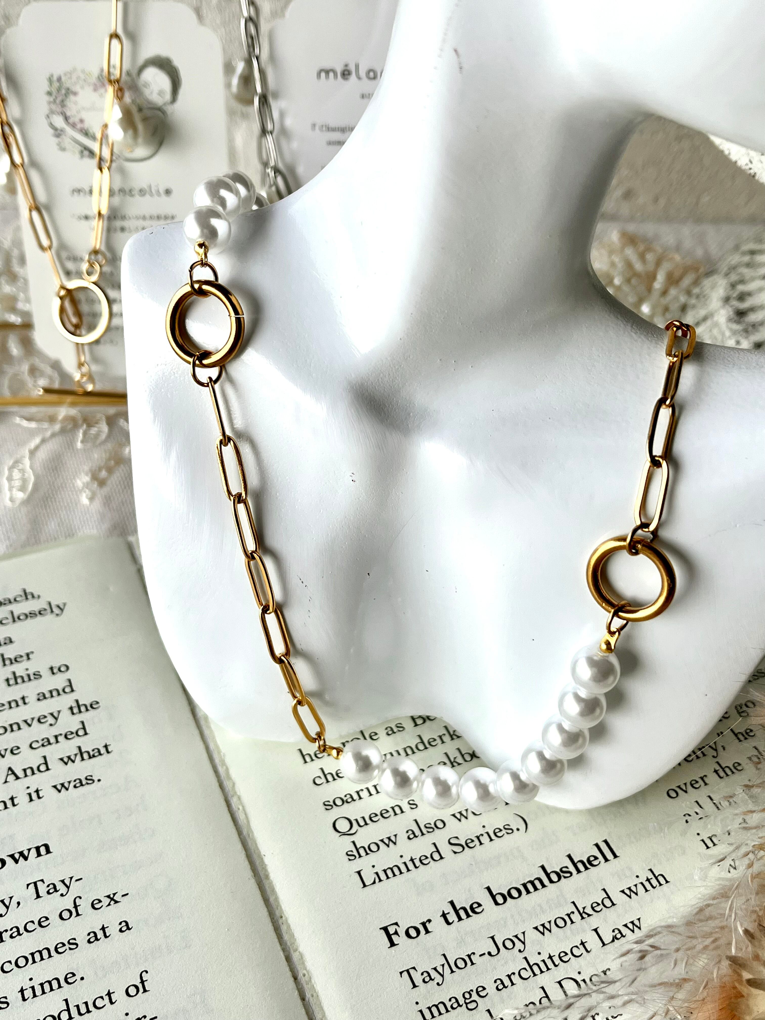 パールとチェーンを交互に組み合わせたネックレスです。
