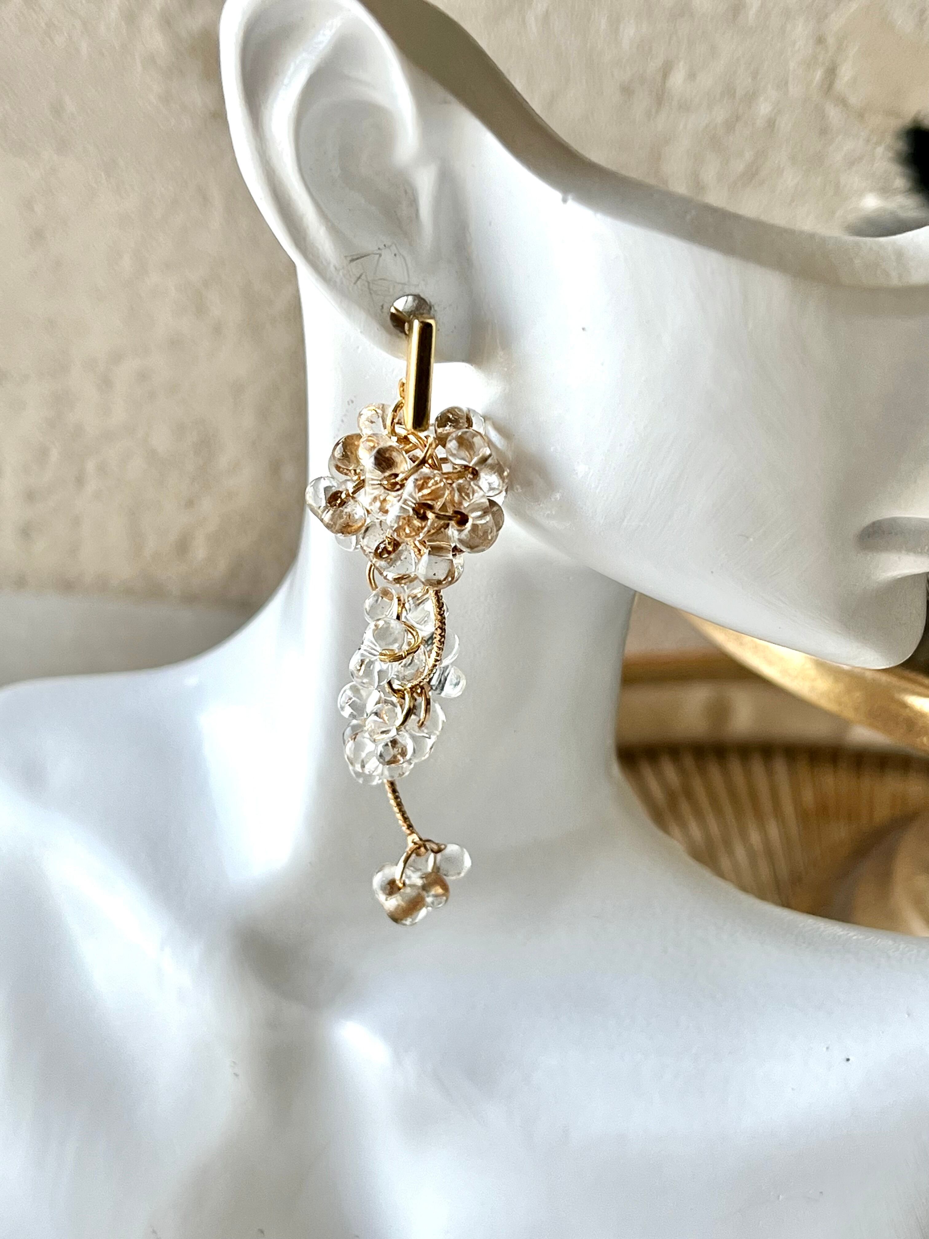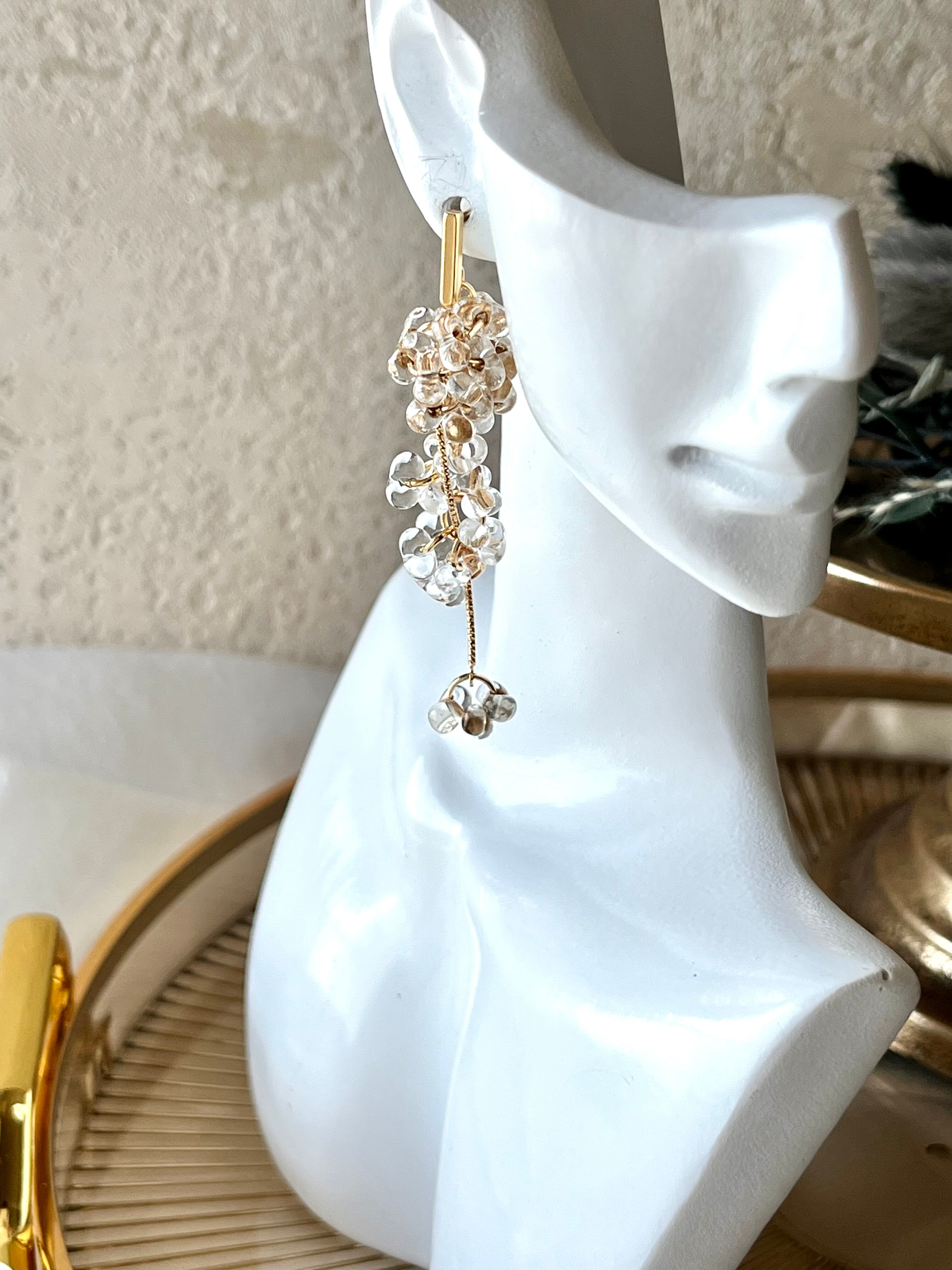 ガラスの中にブロンズカラーを塗装したチェコビーズをたっぷりとあしらったピアスです。