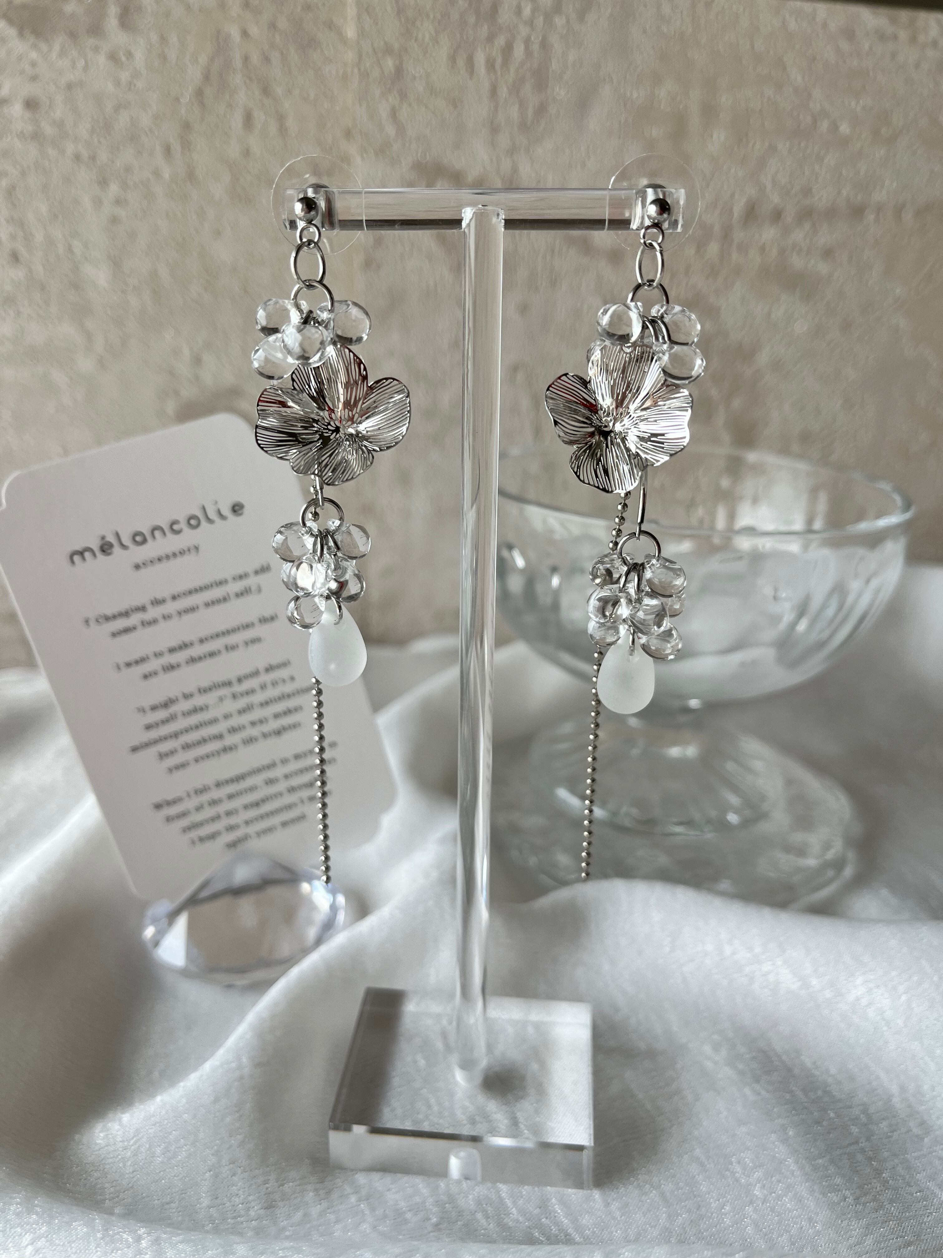 透かしのビオラが大人っぽく涼しげなロングピアスです。