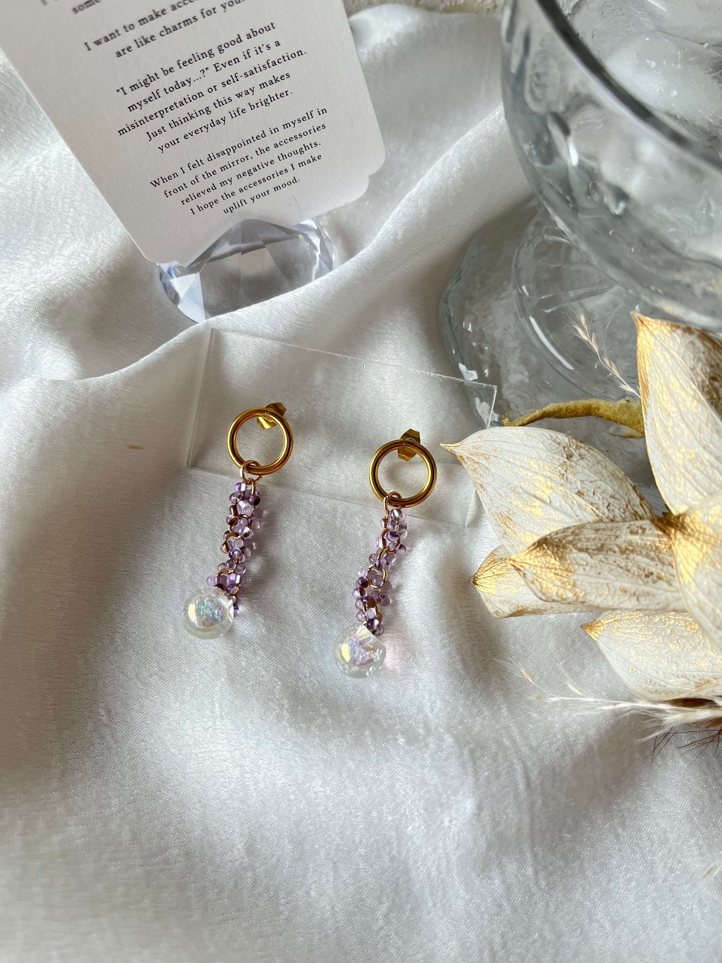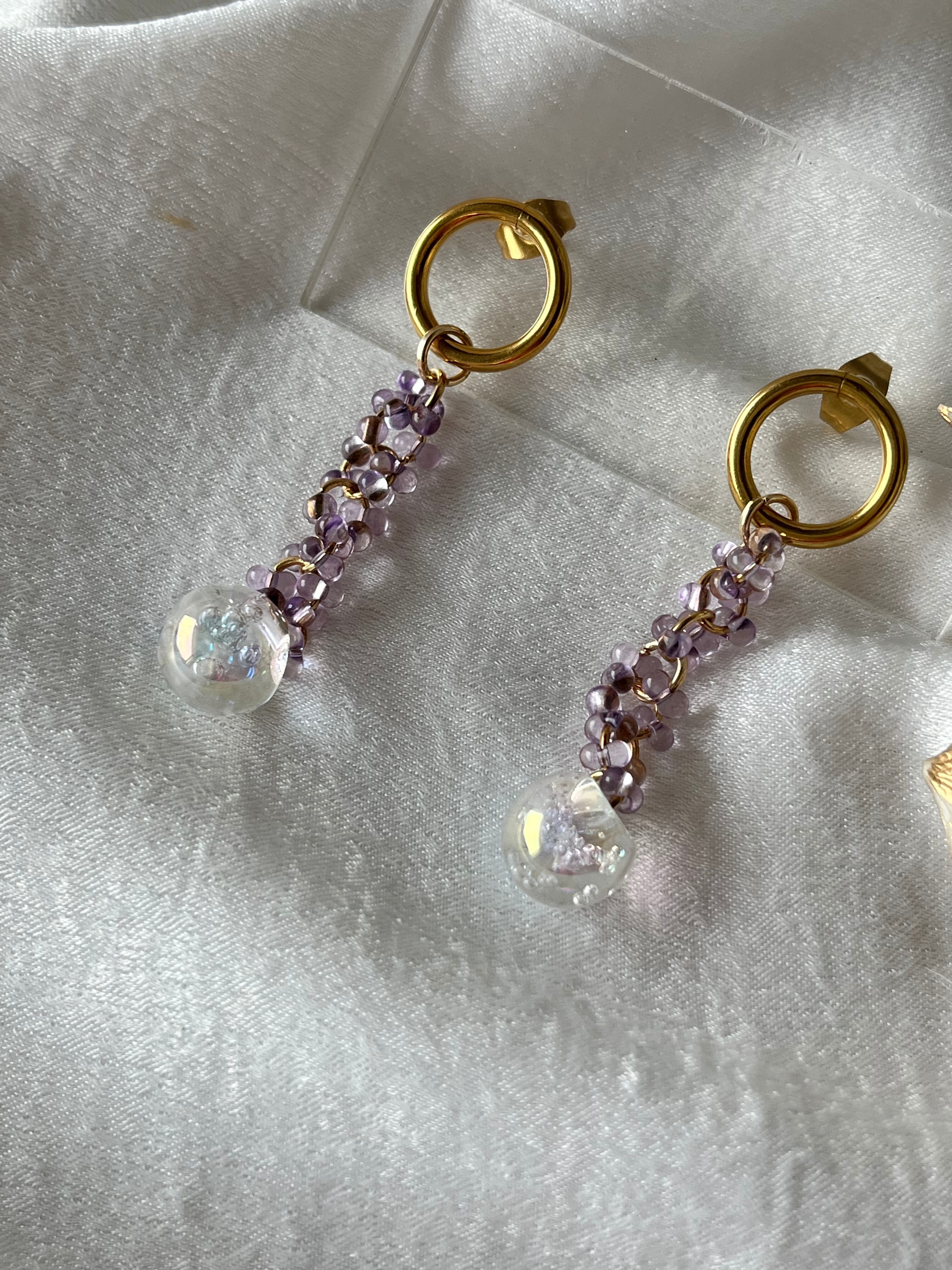 アメジストビーズピアス