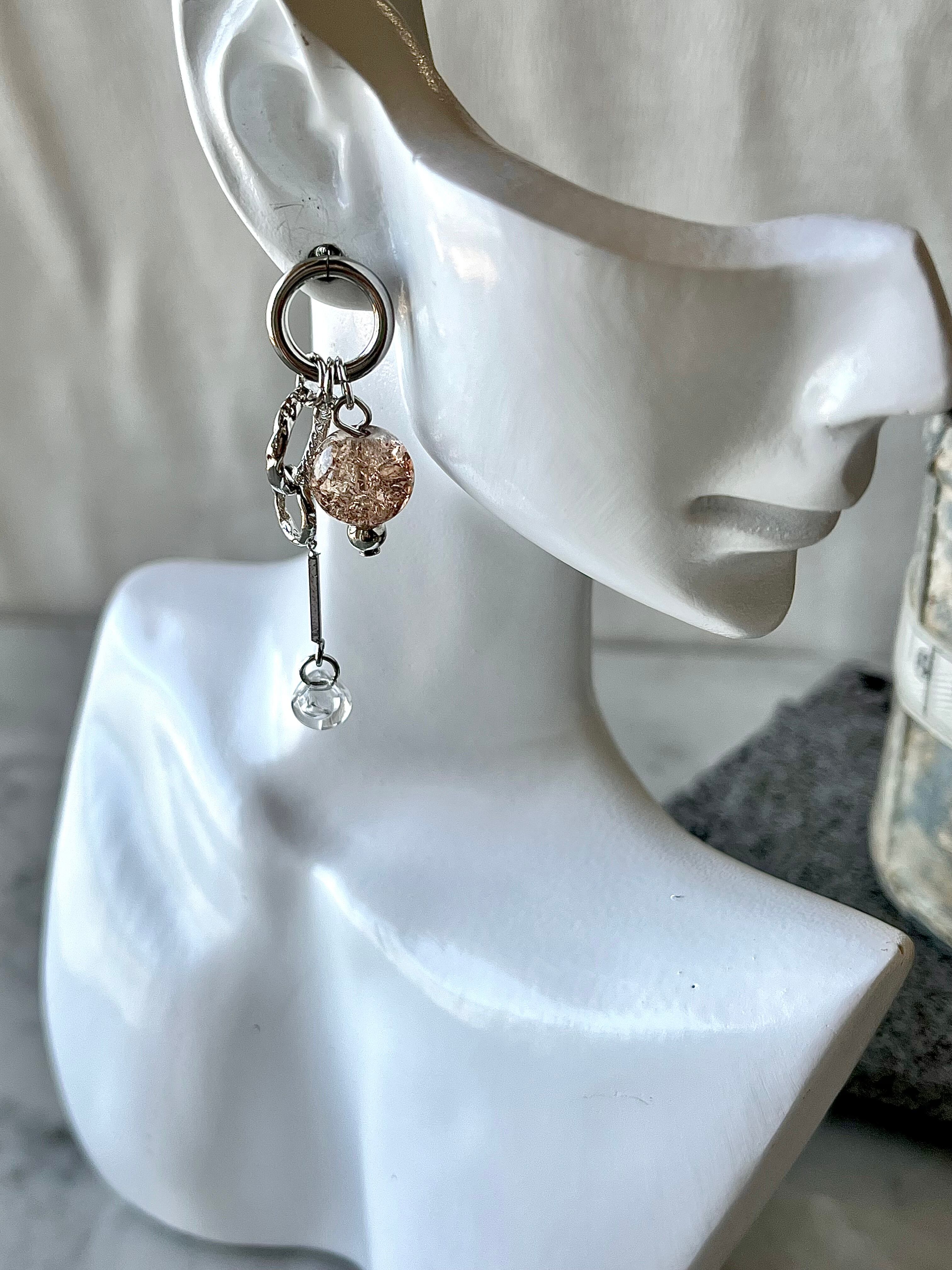 ピアス/ステンレス、ガラスビーズ、サークルとチェーン部分は合金