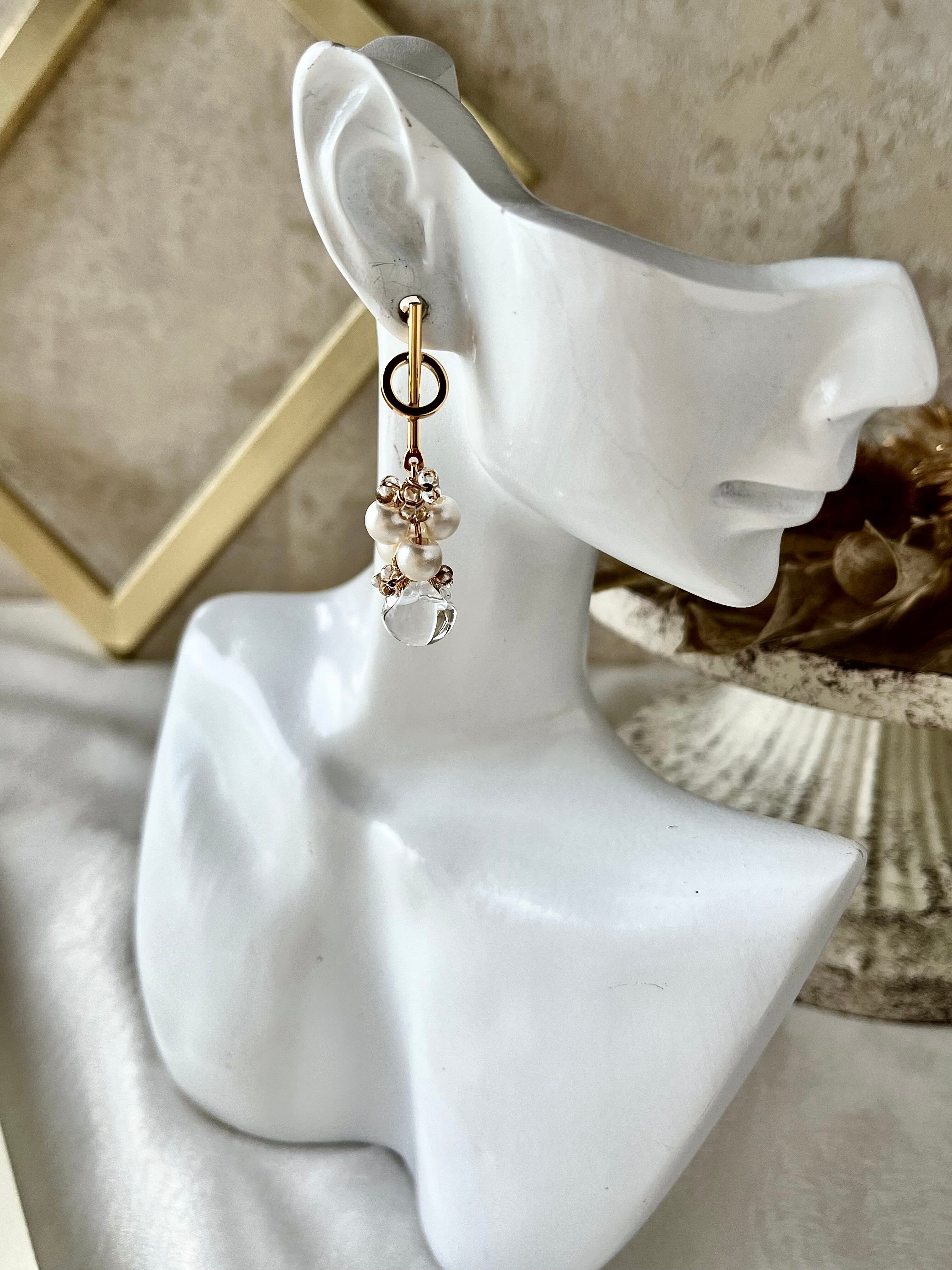 ピアス/18kgp、チェコビーズ、アクリルパール、ガラスビーズ