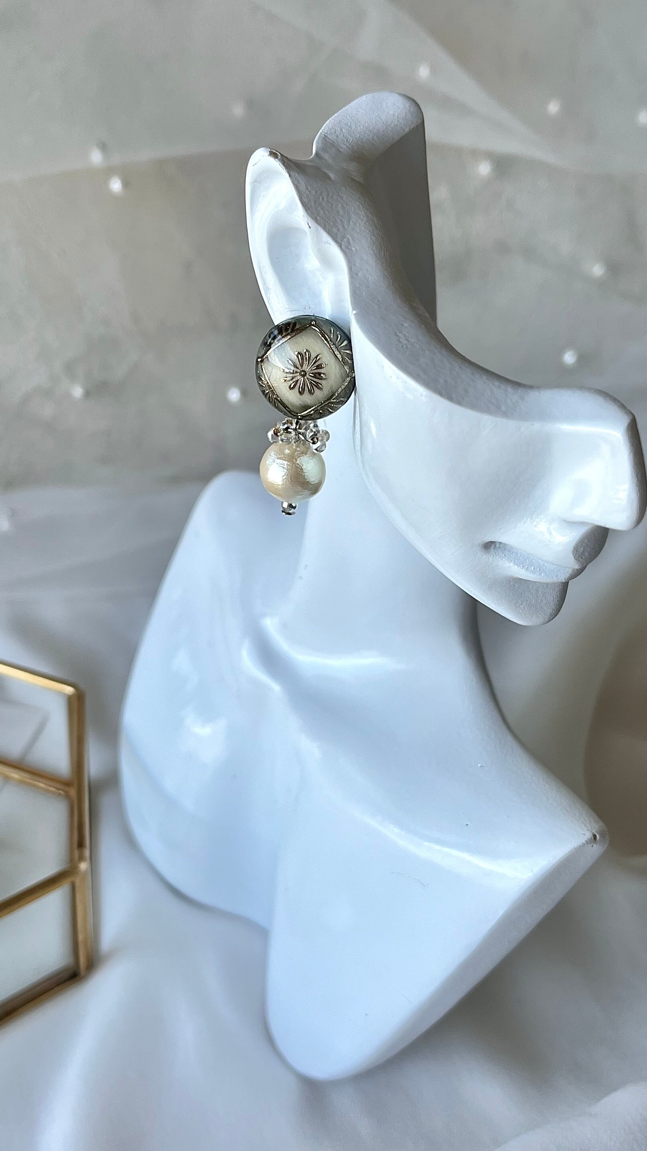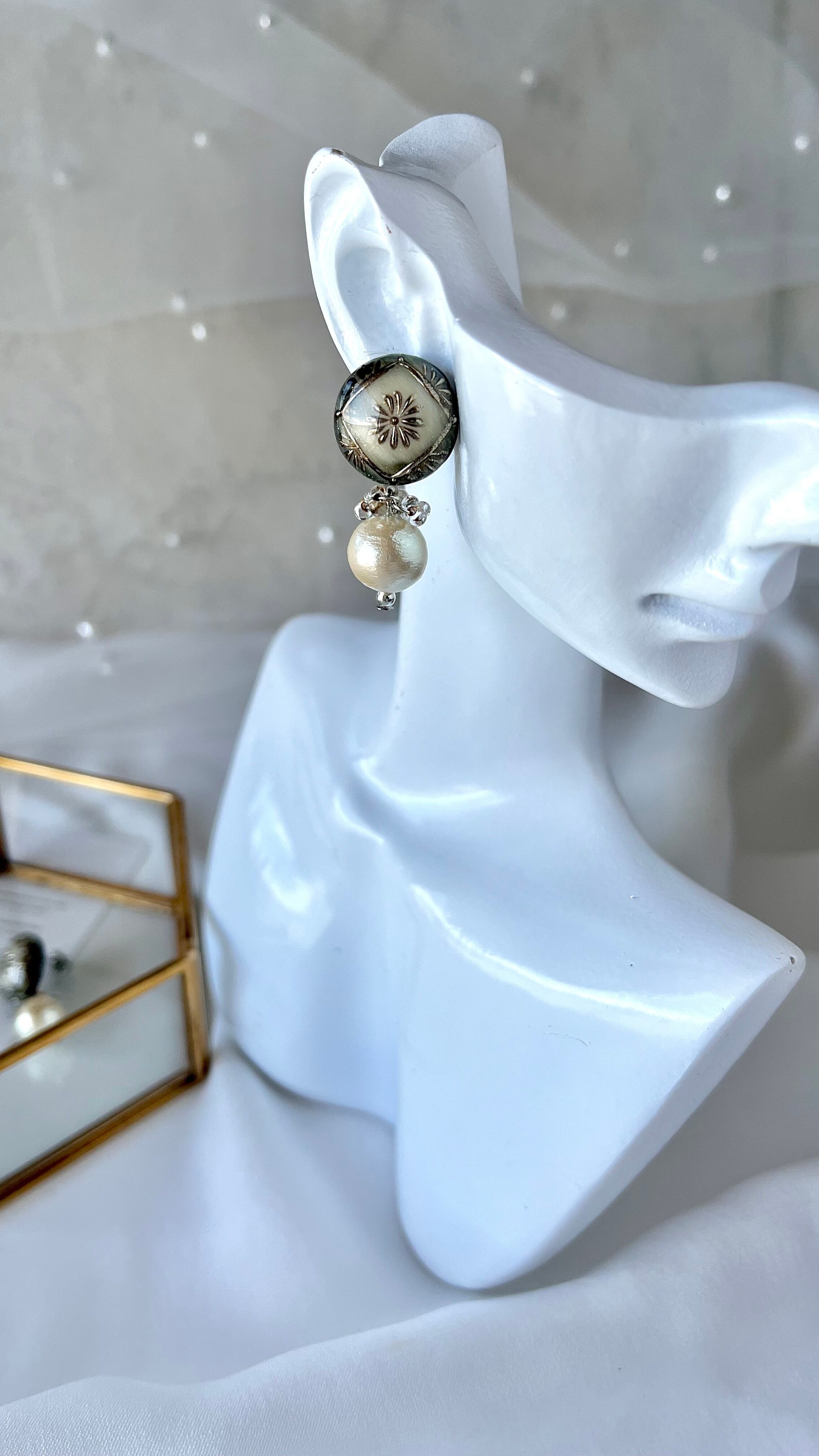 ピアス/ステンレス、ガラス玉、チェコビーズ、国産コットンパール