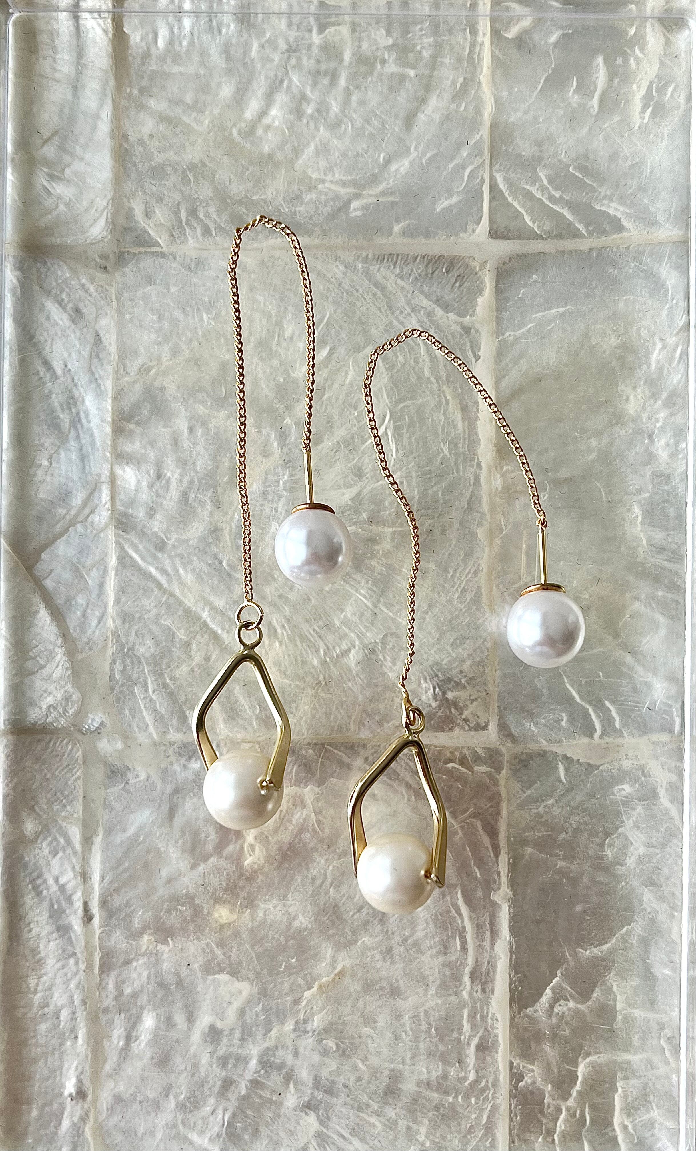 ピアスチェーン/k18gpゴールドメッキ、国産パール、合金、アクリルパール