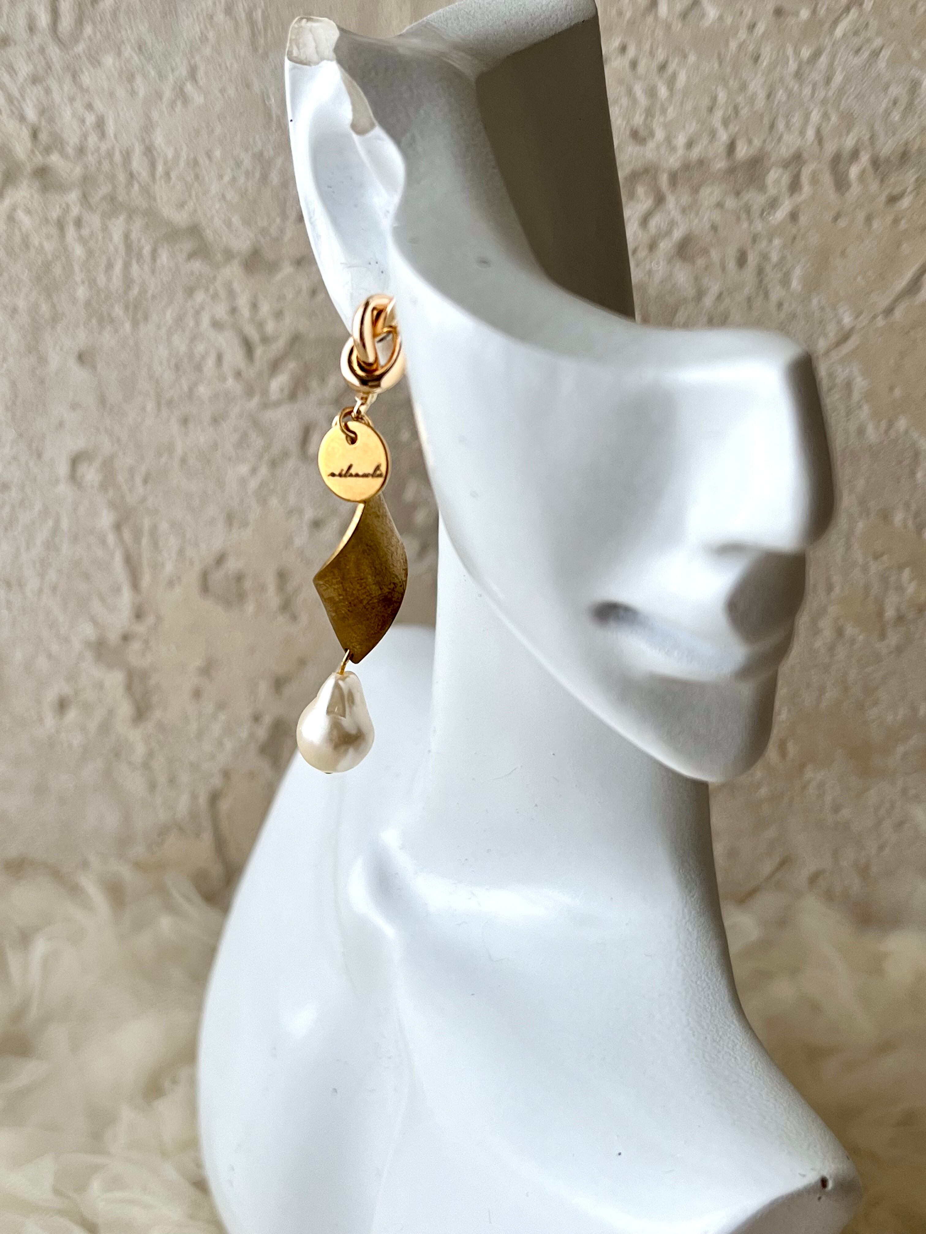 ピアス/18kgpコーティング、真鍮、コットンパール