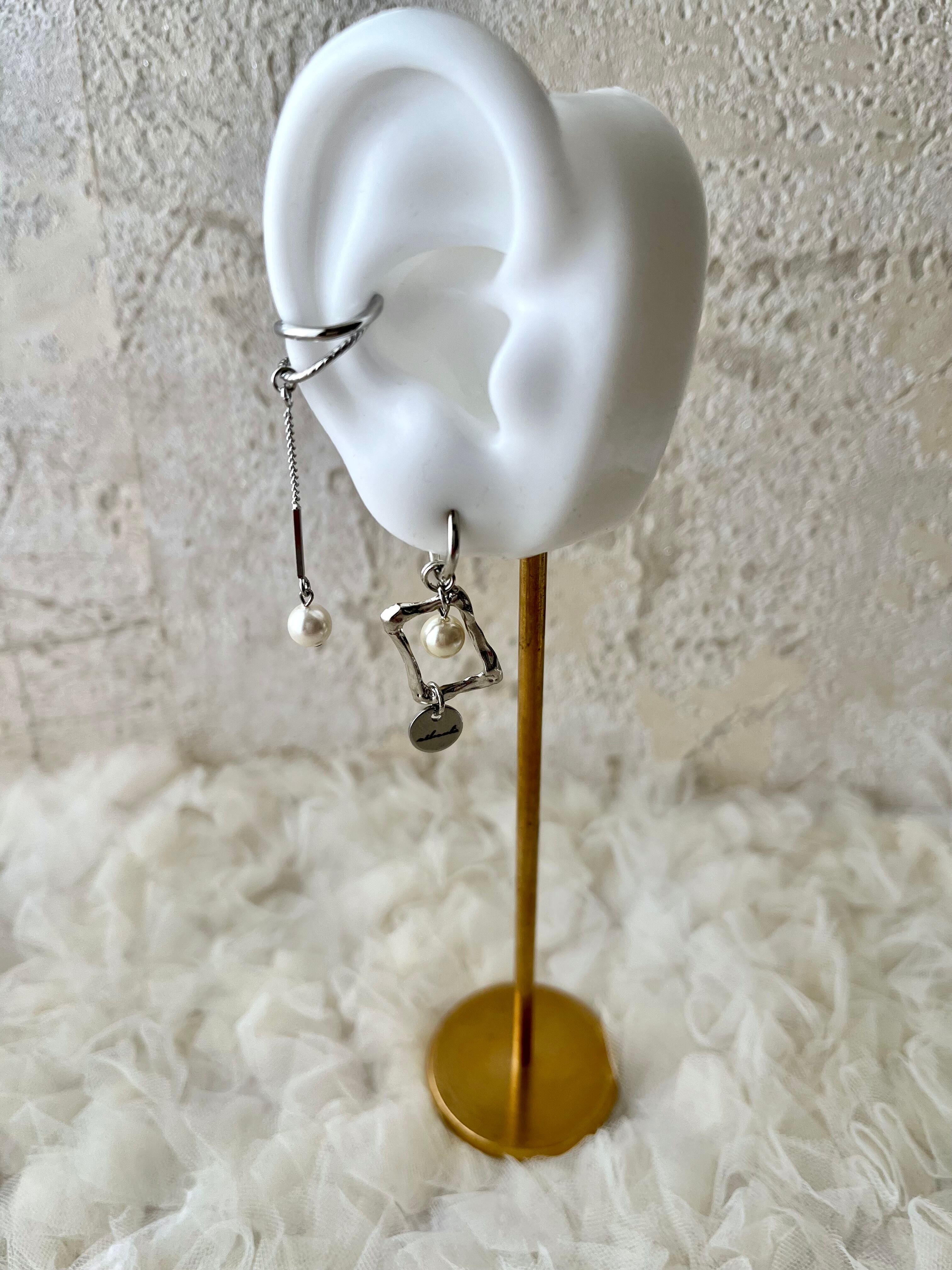 イヤーカフ/16kgpコーティング(gold)、本ロジウムコーティング(silver)、合金チャーム、国産パール