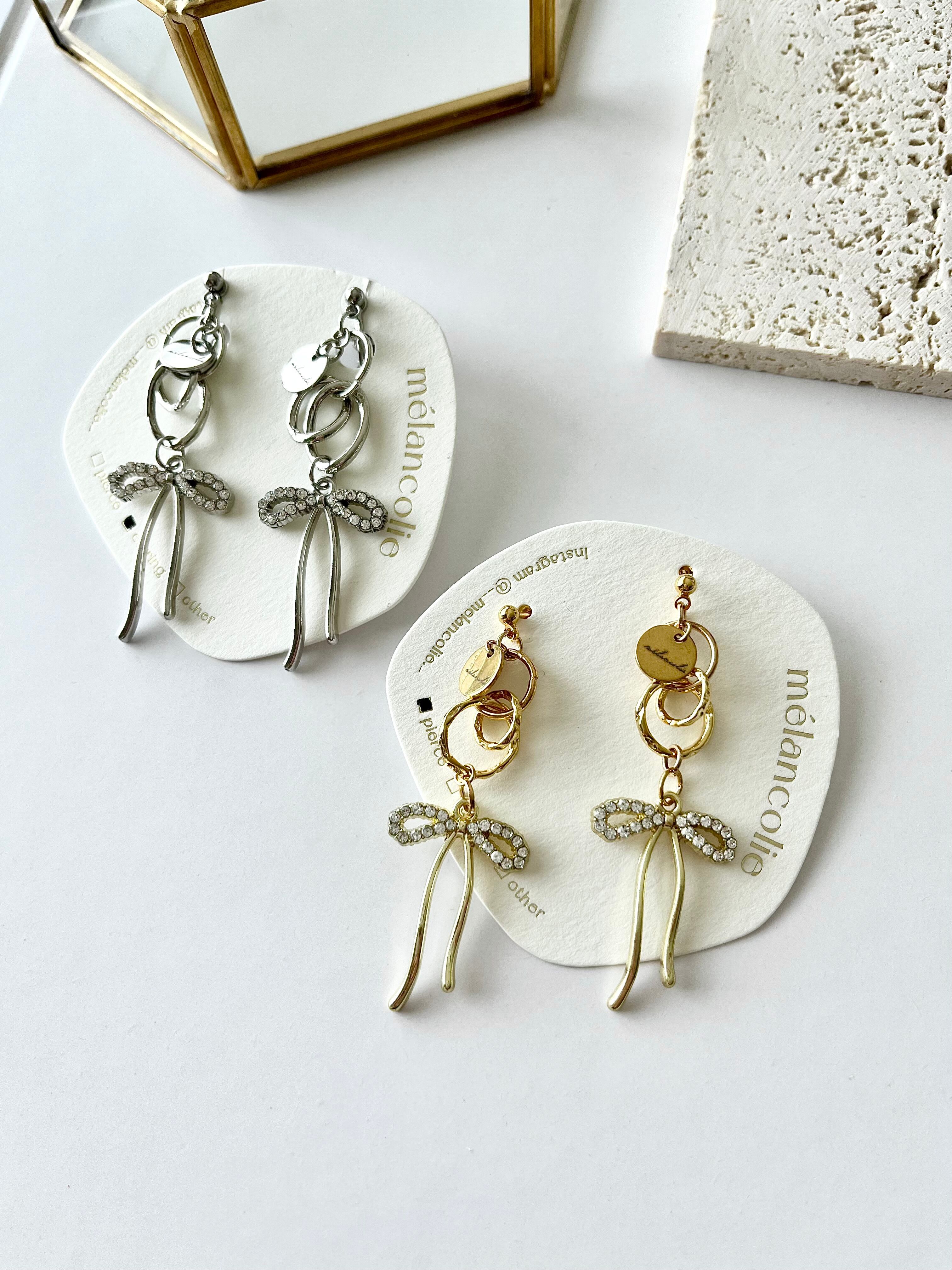 素材:ピアス/サージカルステンレス、リボン/合金、ジルコニア