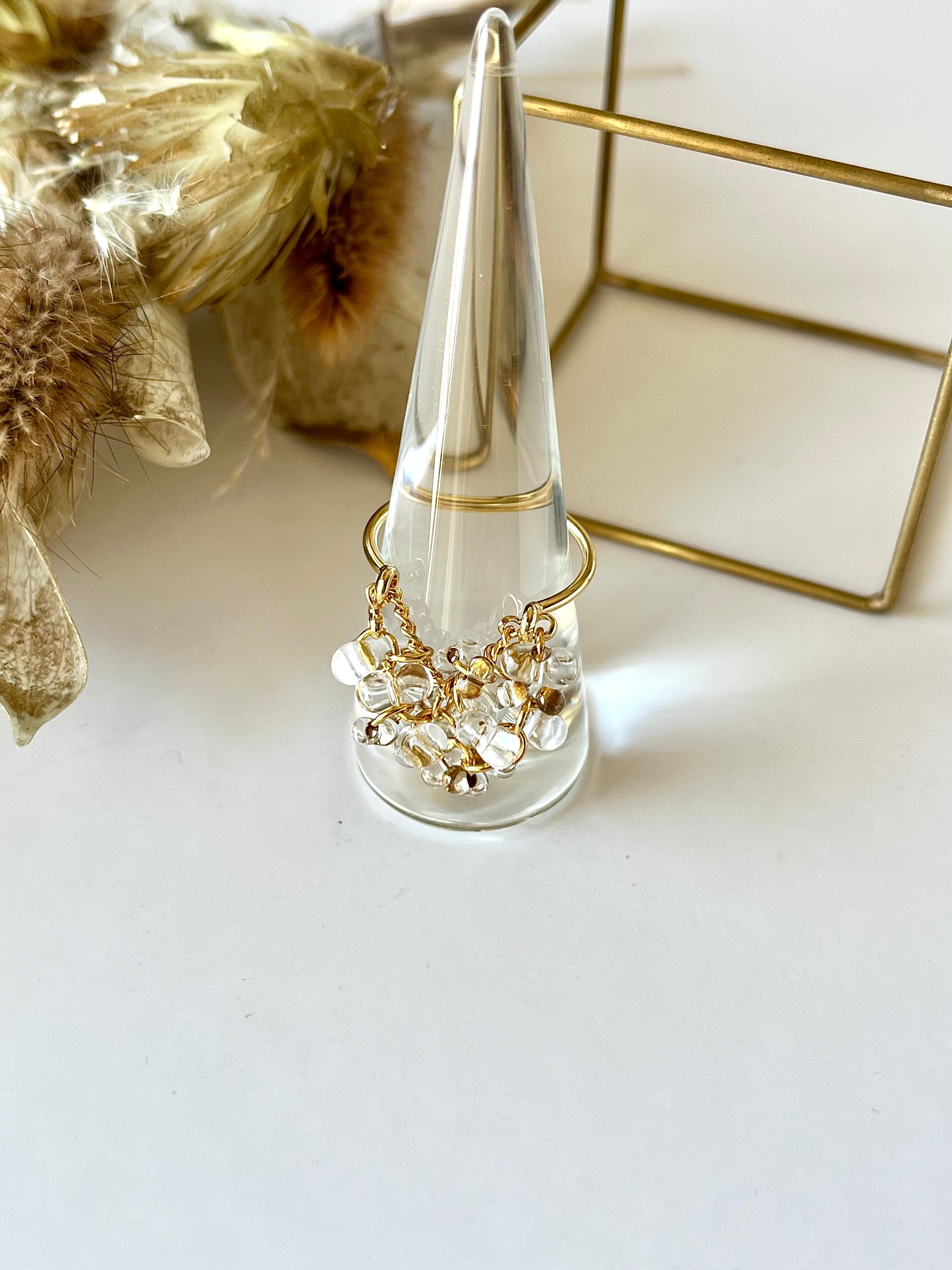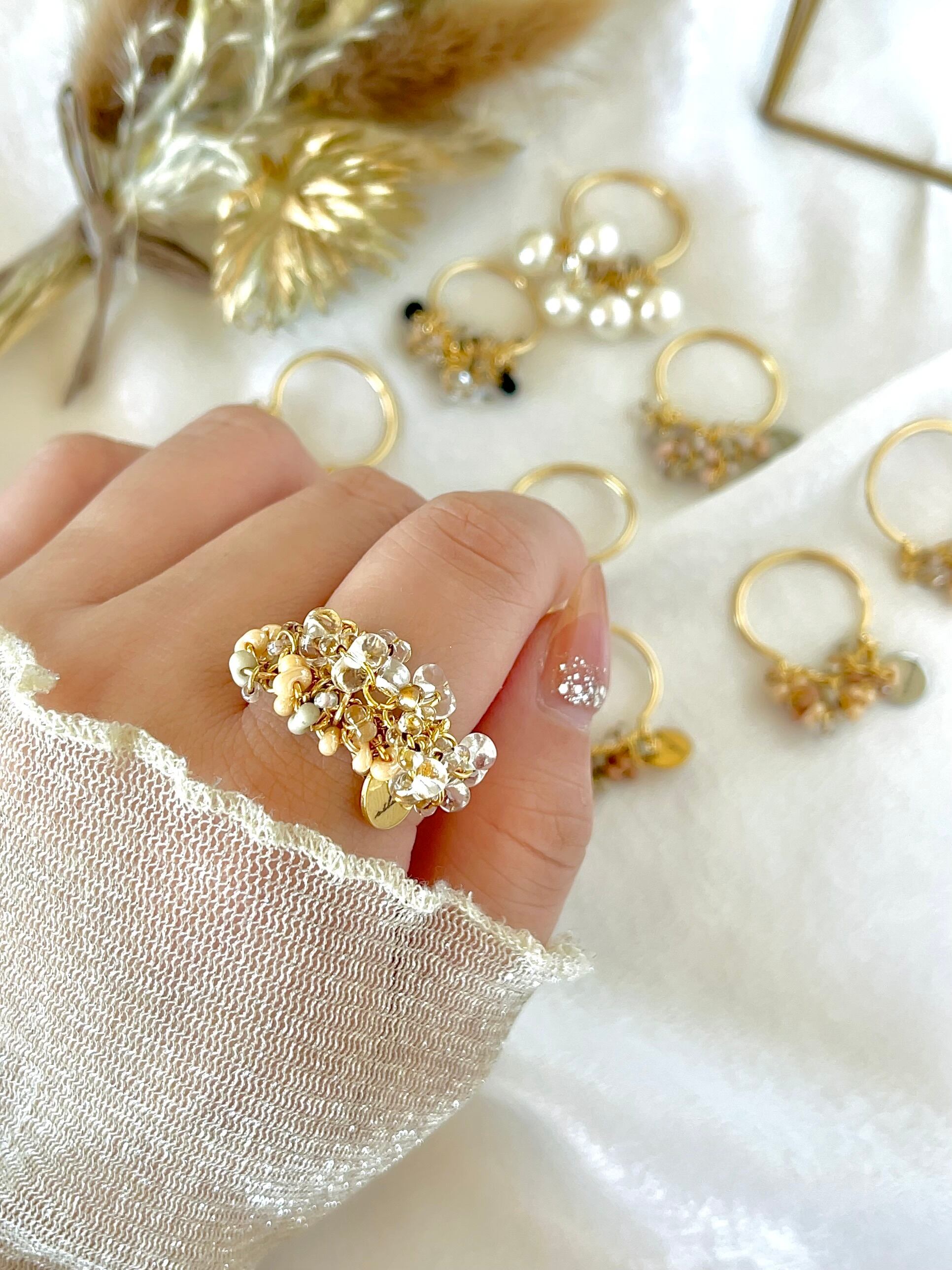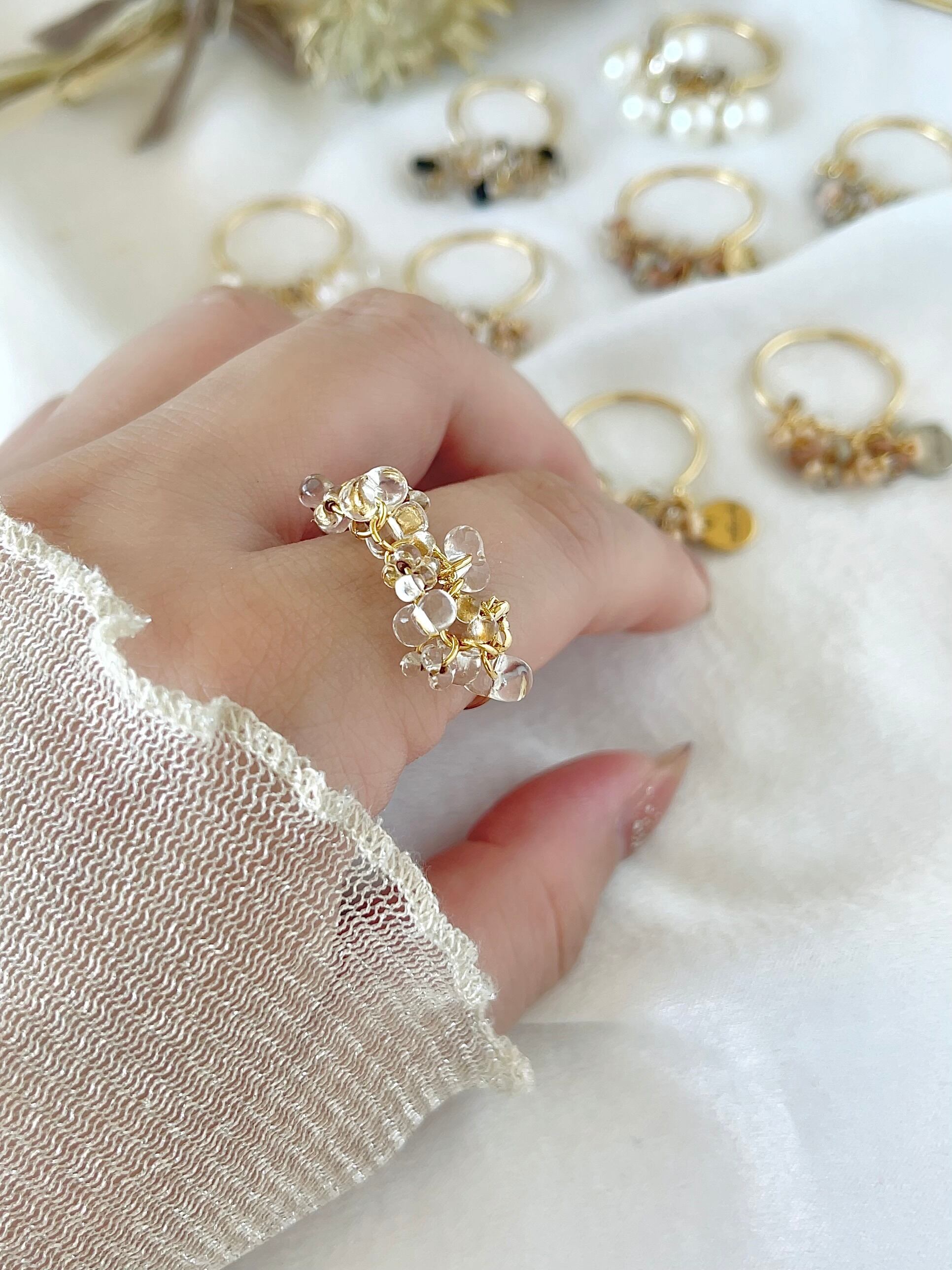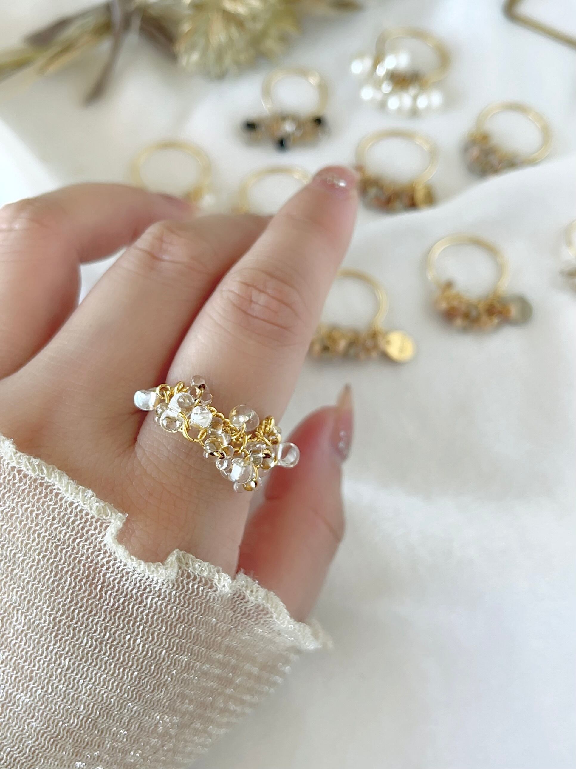 肌馴染みもよく上品で、クリアのお色が合わせやすいのでお手持ちのリングとの重ねづけもオススメです。