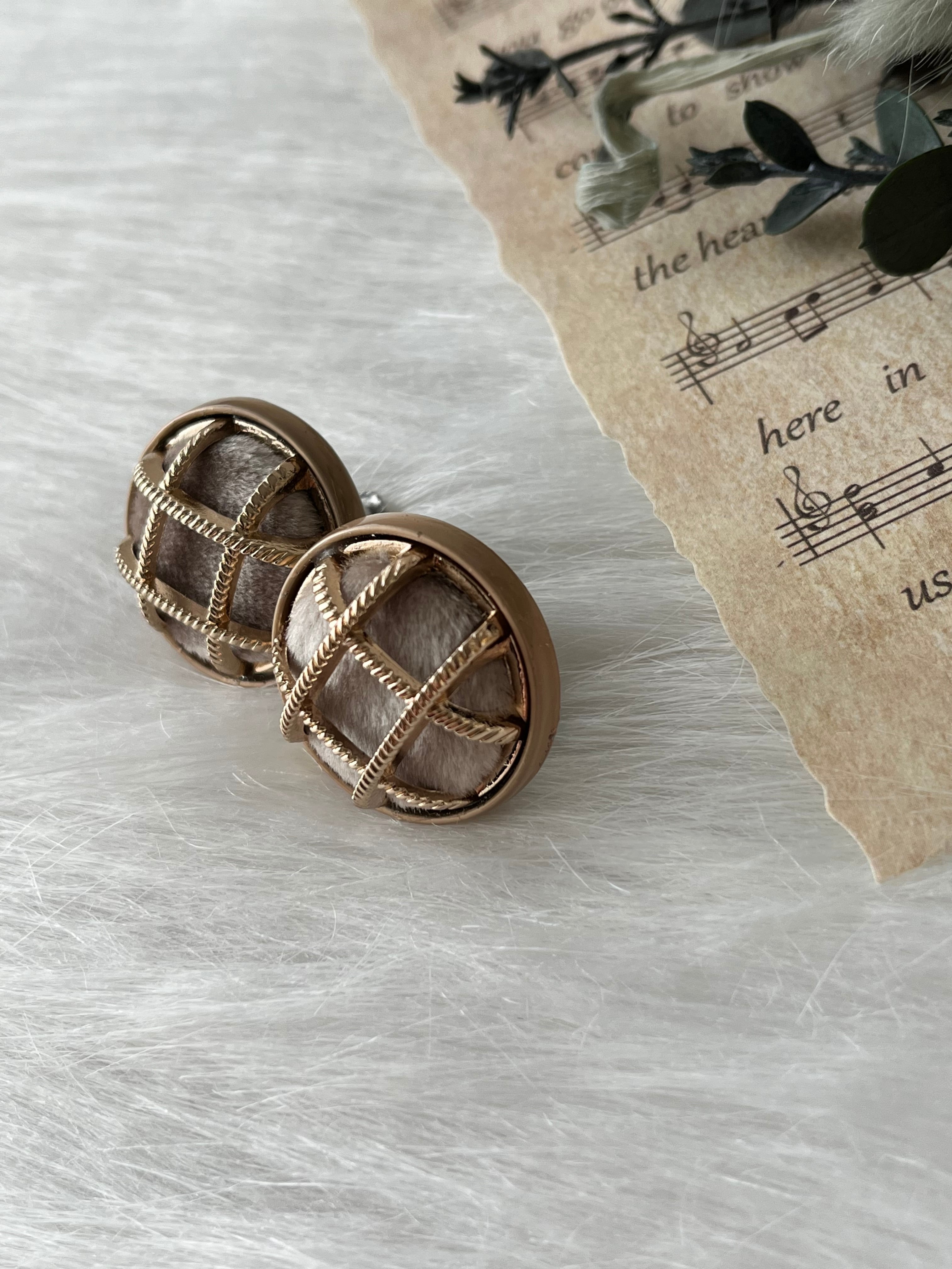 ベロアlattice イヤリング 25㎜ (beige)