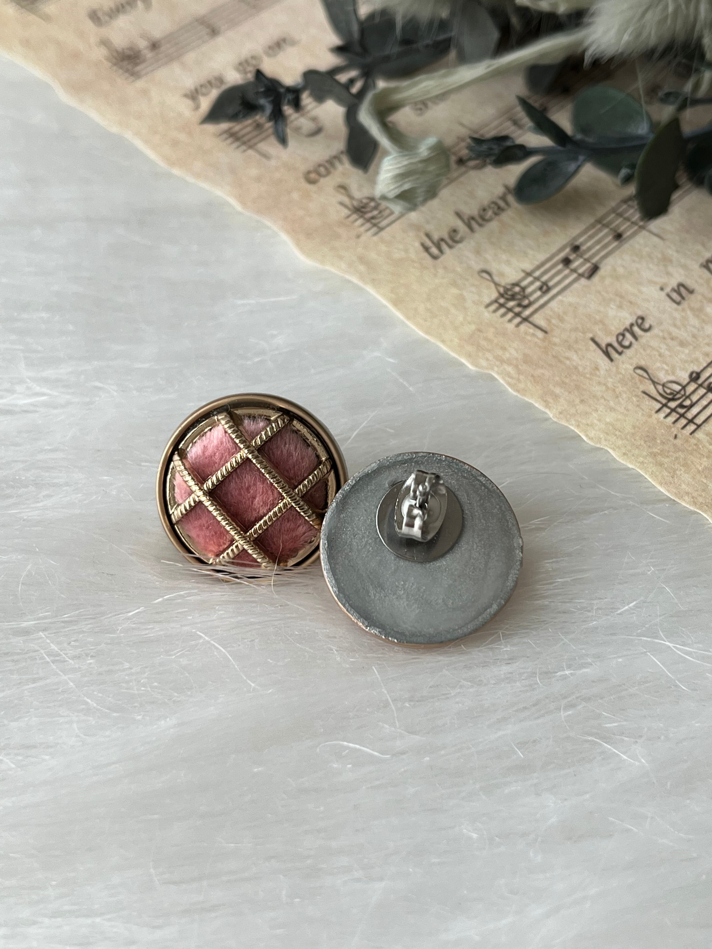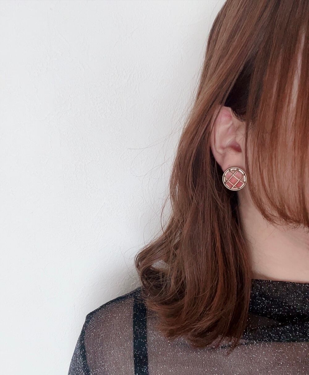 再入荷✴︎ベロアlattice ピアス 18㎜ (beige/pink)