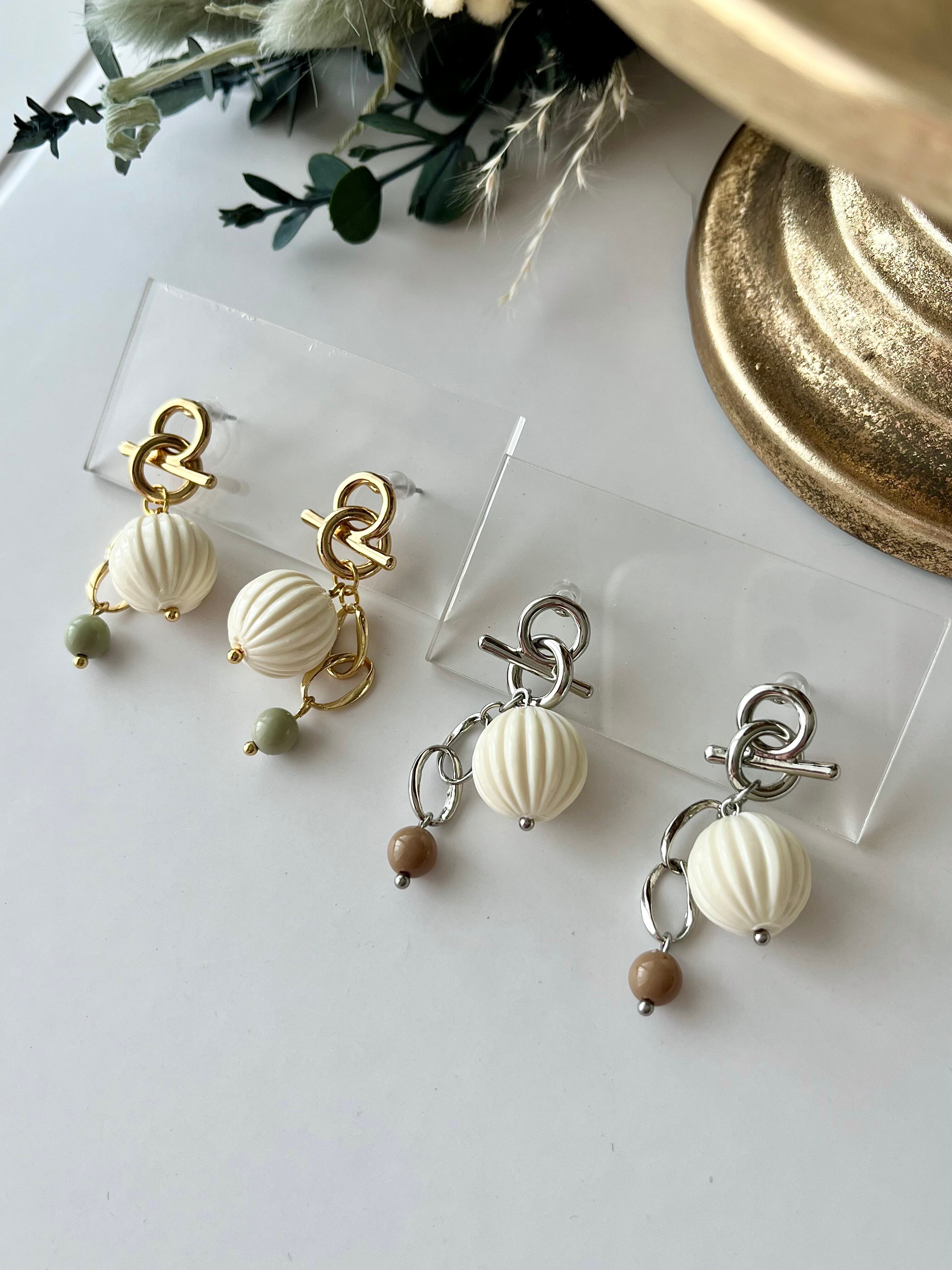 コロンと可愛いかぼちゃビーズに綺麗なチェーンを組み合わせました。