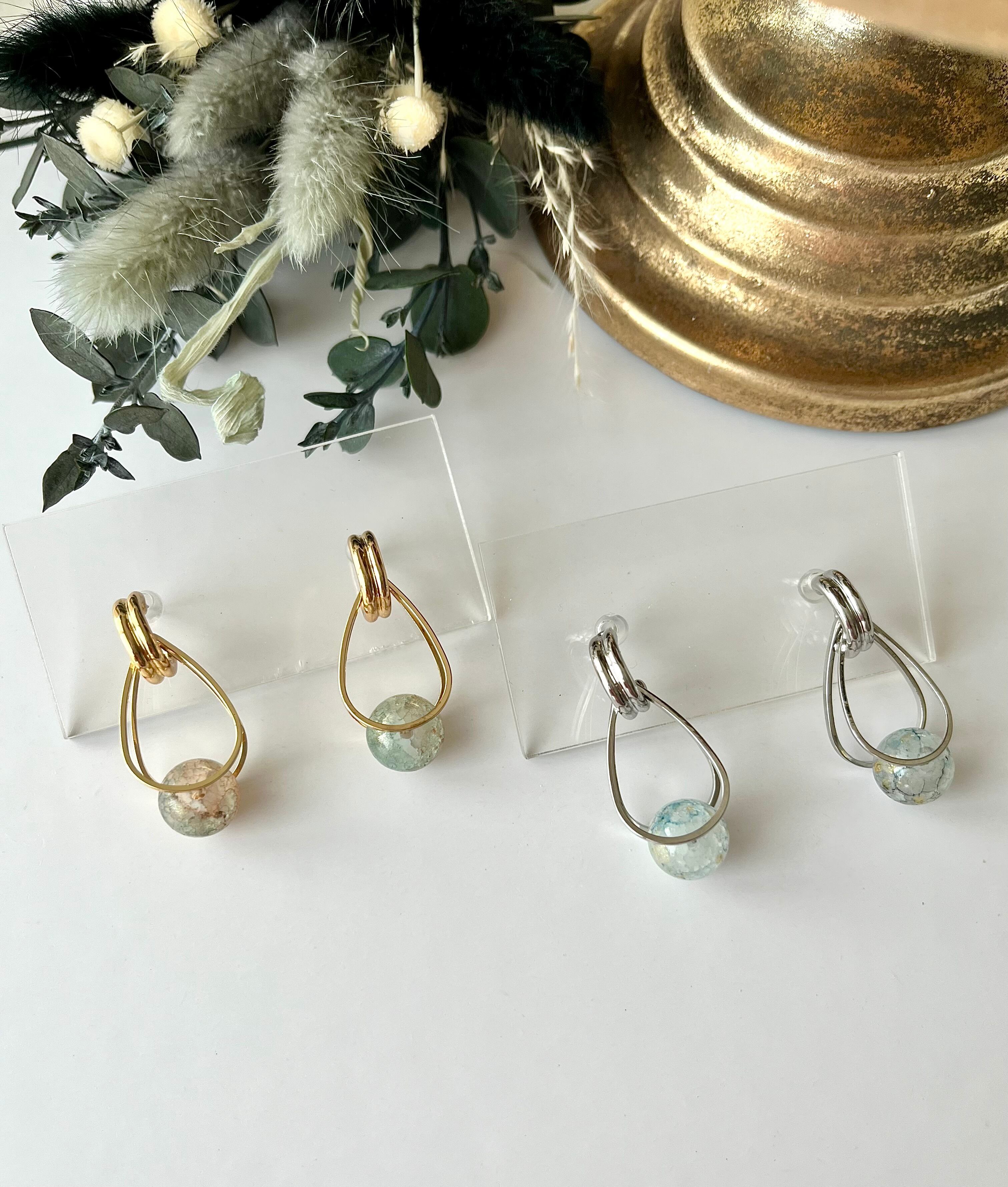 ドロップの先端に着いている天然石のようなクラックの入った綺麗なビーズがポイントです。