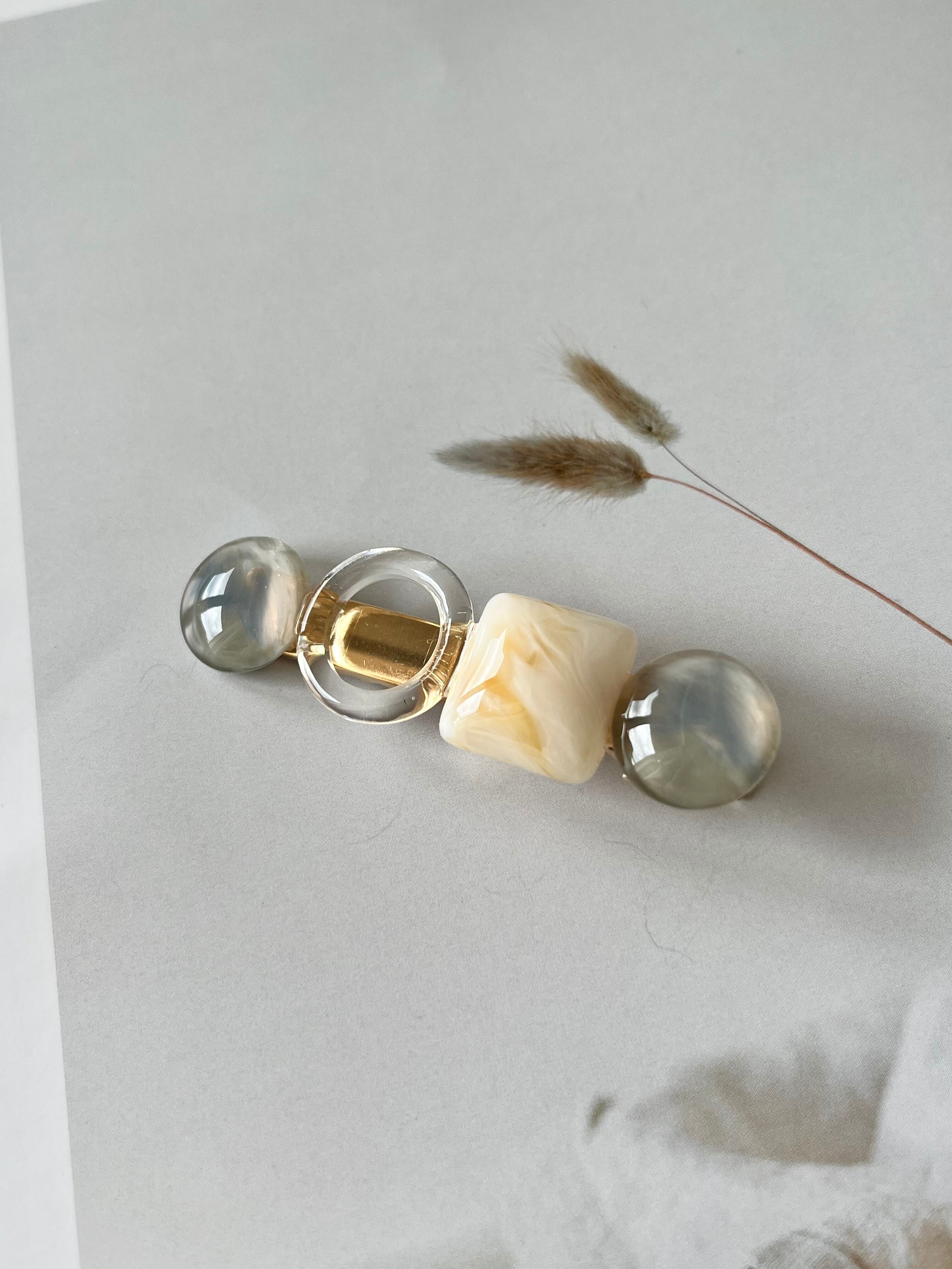 クリップ/鉄(金メッキ)、パーツ/ガラス玉、アクリル、レジンコーティング