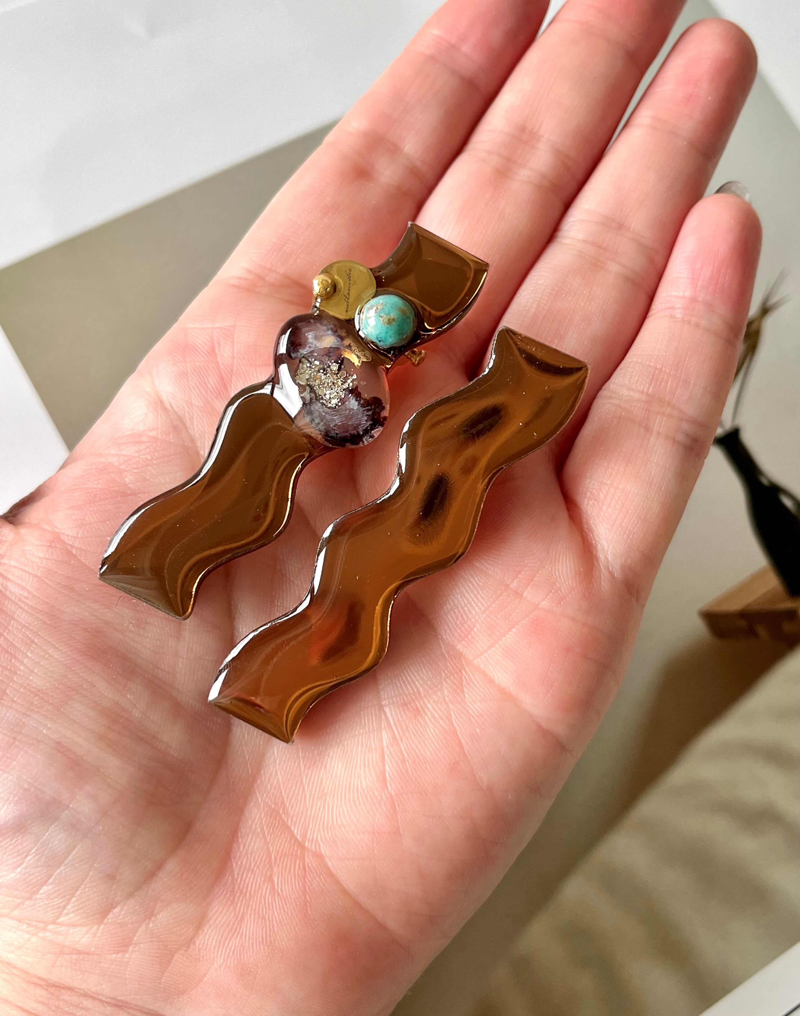 クリップ/鉄、アクリル、レジンコーティング、ガラス玉、チェコビーズ